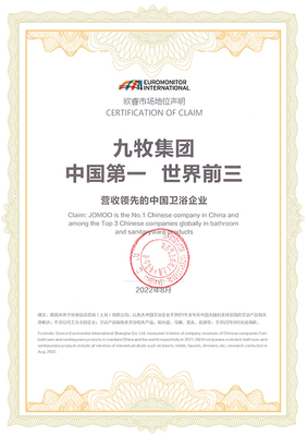 JOMOO is the No.1 Chinese company in China and among the Top 3 Chinese companies globally in bathroom and sanitary ware products